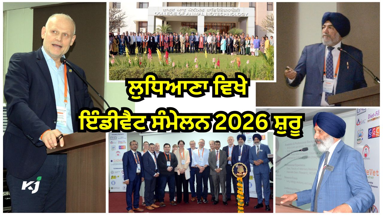 GADVASU: ਗੁਰੂ ਅੰਗਦ ਦੇਵ ਵੈਟਨਰੀ ਅਤੇ ਐਨੀਮਲ ਸਾਇੰਸਜ ਯੂਨੀਵਰਸਿਟੀ (ਗਡਵਾਸੂ),ਲੁਧਿਆਣਾ ਨੇ ਇੰਡੀਵੈਟ ਸੰਮੇਲਨ 2026: ਸਾਇੰਸ, ਨੀਤੀ ਅਤੇ ਸਿੱਖਿਆ ਦੇ ਸਾਂਝੇ ਉੱਦਮ ਦਾ ਉਦਘਾਟਨ ਕੀਤਾ, ਜਿਸ ਵਿੱਚ ਪ੍ਰਸਿੱਧ ਰਾਸ਼ਟਰੀ ਅਤੇ ਅੰਤਰਰਾਸ਼ਟਰੀ ਡੈਲੀਗੇਟਾਂ ਨੇ ਸ਼ਿਰਕਤ ਕੀਤੀ।